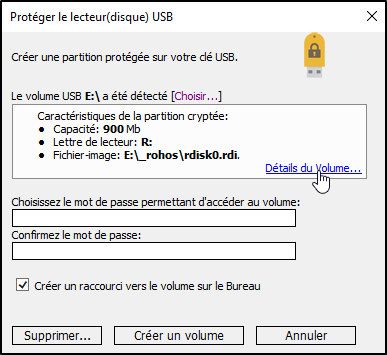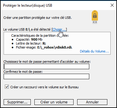 La version gratuite de Rohos Mini Drive vous permet de créer un espace sécurisé de 900 Mo maximum, ce qui est suffisant pour protéger vos documents sensibles sur votre clé USB.