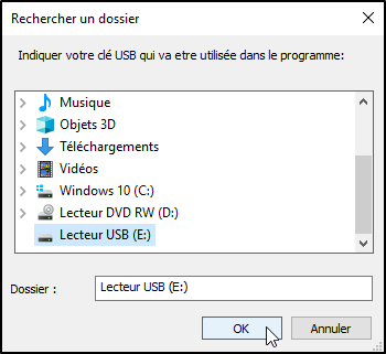 5. Sélectionnez votre clé USB puis cliquez sur le bouton OK.