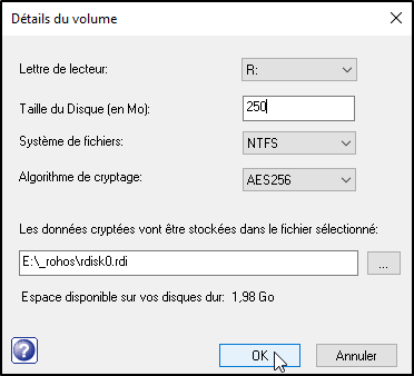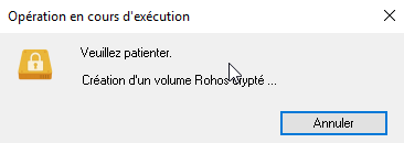 11. Votre volume caché et crypté est alors créé. L'opération peut durer plusieurs minutes suivant la taille du volume protégé et de la vitesse de votre clé USB.