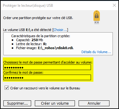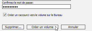 9. Saisissez alors un mot de passe qui servira à votre volume protégé. Veillez à définir un mot de passe complexe mêlant lettres et chiffres pour bien protéger vos données. Confirmez ensuite votre mot de passe.
