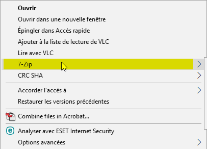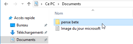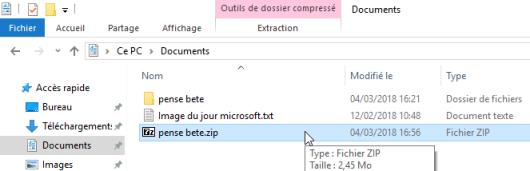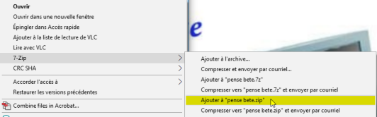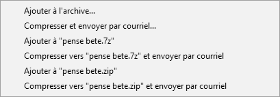 4. Pour créer rapidement une archive de votre dossier et des fichiers (et sous dossiers) qu'il contient, sélectionnez l'option Ajouter à [nomdudossier.zip]. Dans cet exemple "pense bete.zip".