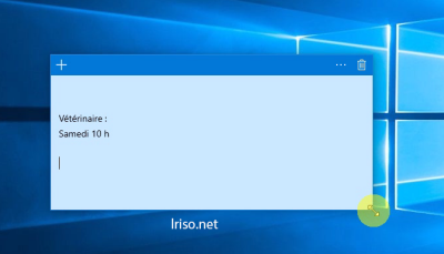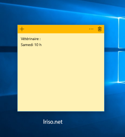 Sous Windows 10, le pense-bête garde son nom anglais : Sticky Notes. Si vous arrêtez votre ordinateur avec des notes sur le bureau, elles sont automatiquement affichées au démarrage suivant.