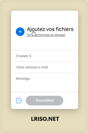 Si vous ne souhaitez pas indiquer d'adresse mail de destinataire, vous pouvez opter pour la solution du lien que vous enverrez vous-même à qui vous souhaitez. Cliquez sur le bouton … et sélectionnez alors l'option Lien. Vous obtiendrez un lien de téléchargement une fois vos fichiers envoyés.