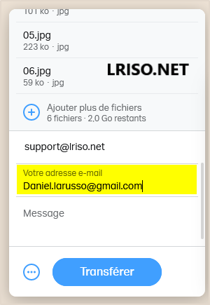 5. Recommencez l'opération pour tous les fichiers à transférer, dans la limite totale de 2 Go.