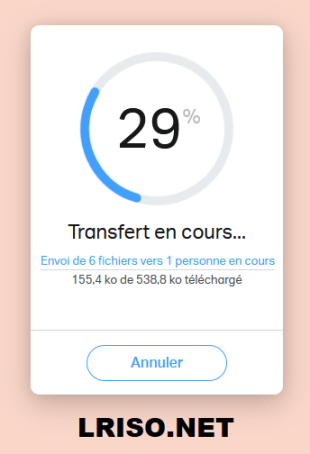 11. L'envoi vers les serveurs de WeTransfert commence alors. L'opération peut être plus ou moins longue suivant votre connexion à Internet et la quantité de données à transférer.