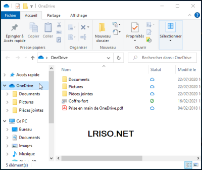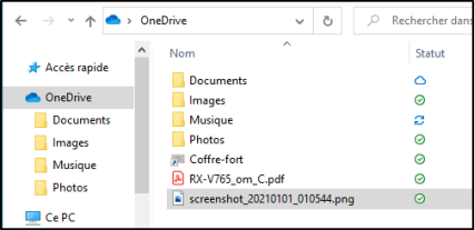 Un nouveau dossier OneDrive est créé sur votre disque dur. Réplique exacte et synchronisée de votre dossier OneDrive en ligne, vous allez pouvoir l'utiliser pour mettre vos fichiers sur OneDrive.