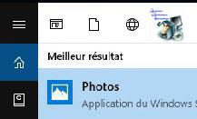 1. Lancez Photos à partir du menu Démarrer. Vous pouvez aussi saisir la commande photos directement dans le champ de recherche et cliquez sur l'application correspondante.