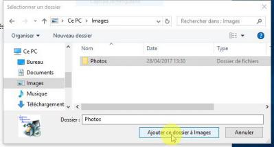 5. Dans la fenêtre qui s'ouvre, sélectionnez le dossier à ajouter à Photos et cliquez sur Ajouter ce dossier à Images.