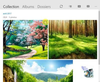 6. Recommencez l'opération pour les autres dossiers à ajouter. Revenez ensuite à l'accueil de Photos en cliquant sur la flèche de retour dans la barre de titre. La bibliothèque de photos est affichée.