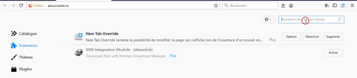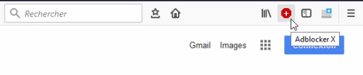 4. Dans le champ mettez le nom de l'extension qui vous intéresse, à savoir Adblocker X et cliquez sur la loupe pour lancer la recherche.
