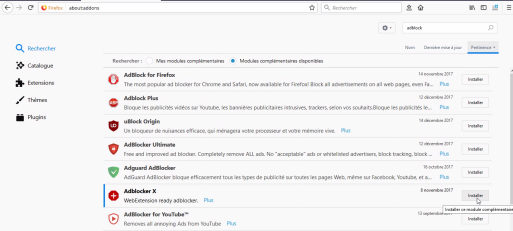 5. Une liste de modules complémentaires apparaît, cliquez ensuite sur le bouton Installer pour ajouter cette extension dans votre navigateur.