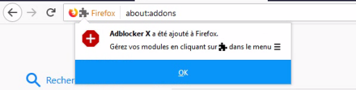7. Une fenêtre s'affiche pour confirmer qu'Adblocker X a été ajouté à Firefox. Cliquez sur OK.