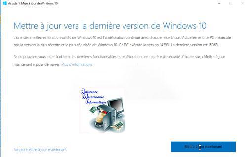 1. L'assistant analyse alors votre ordinateur et vous propose de passer à la version 15063 de Windows 10, qui est le numéro de la Windows 10 Creators Update. Cliquez sur Mettre à jour maintenant.