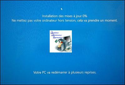 6. L'installation de la mise à jour commence. Cela peut durer plusieurs dizaines de minutes et votre ordinateur peut redémarrer plusieurs fois.