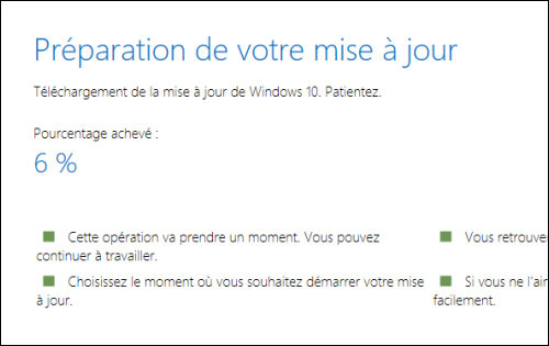 Une fois la mise à jour téléchargée automatiquement par Windows Update, le processus d'installation commencera.