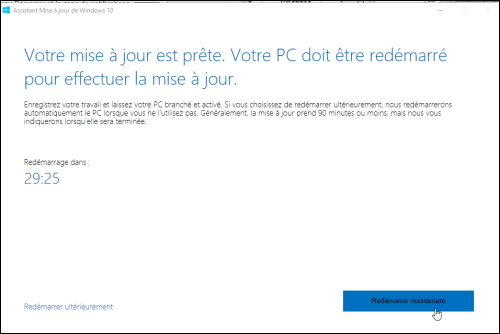 2. L'assistant de mise à jour vous indique qu'une nouvelle version de Windows 10 (16299) est disponible. Cliquez sur le bouton Mettre à jour maintenant.