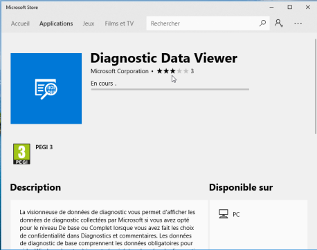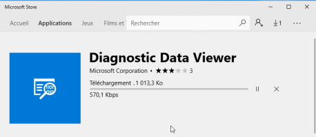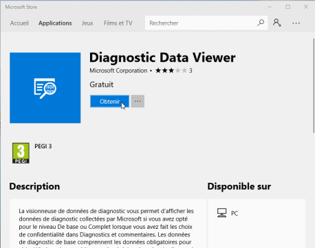 1. Microsoft Store se lance automatiquement et vous propose d'installer Diagnostic Data Viewer. Cliquez sur Obtenir.
