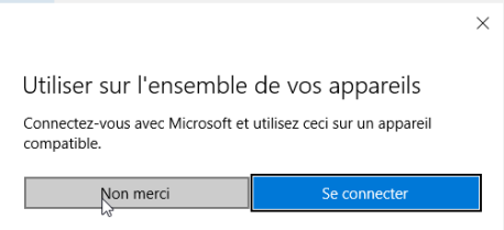 3. Microsoft vous propose d'utiliser ceci sur l'ensemble de vos appareils. Si vous avez plusieurs ordinateurs ou tablettes connectés avec le même compte Microsoft, cliquez sur Se connecter. Dans le cas contraire, cliquez sur Non merci.