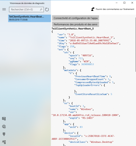 Vous voyez alors le contenu brut des éléments envoyés à Microsoft.