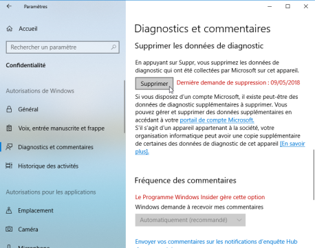 Microsoft vous permet également de supprimer toutes les données collectées sur votre ordinateur.