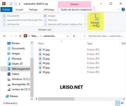 9. L'archive est décompressée et vous disposez alors de tous les fichiers envoyés par votre correspondant.