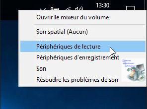 1. Cliquez avec le bouton droit de la souris sur l'icône représentant un haut-parleur dans la zone de notification.