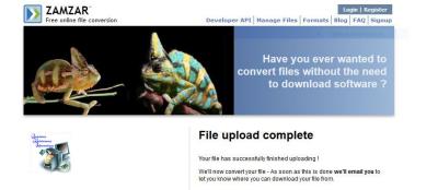 7. Votre fichier est alors envoyé au service ZamZar. Suivant la taille de celui-ci cette opération peut durer plusieurs minutes.