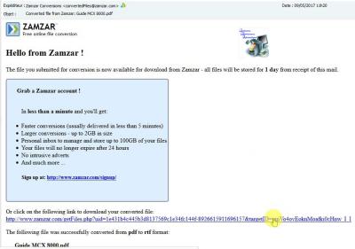 9. Une fois la conversion terminée, vous êtes prévenu par un email. Cliquez sur le lien donné dans l'email.